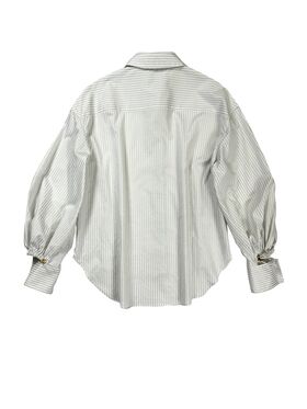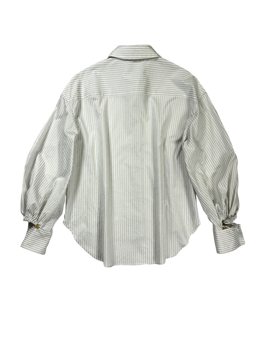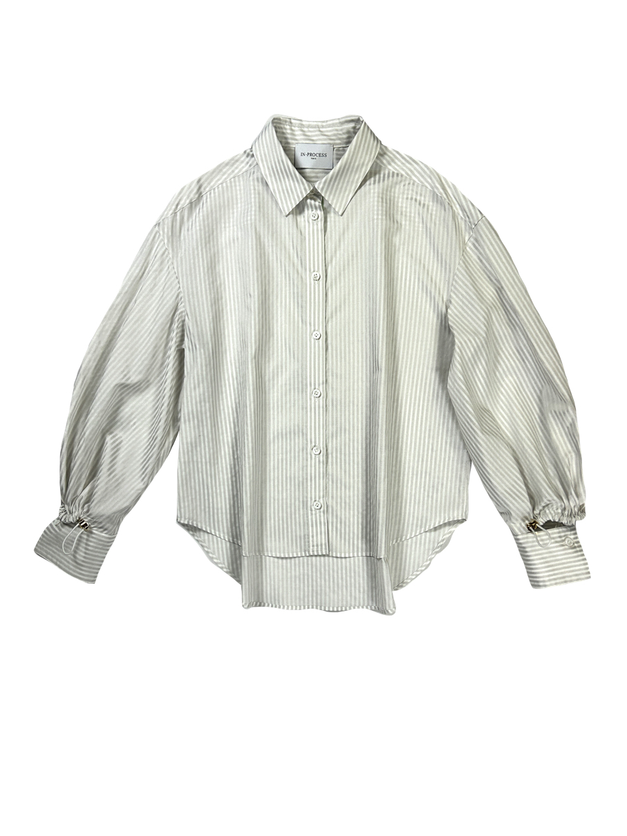 SLIT CUFF AND PUFF SLEEVE SILKY SHIRT_B