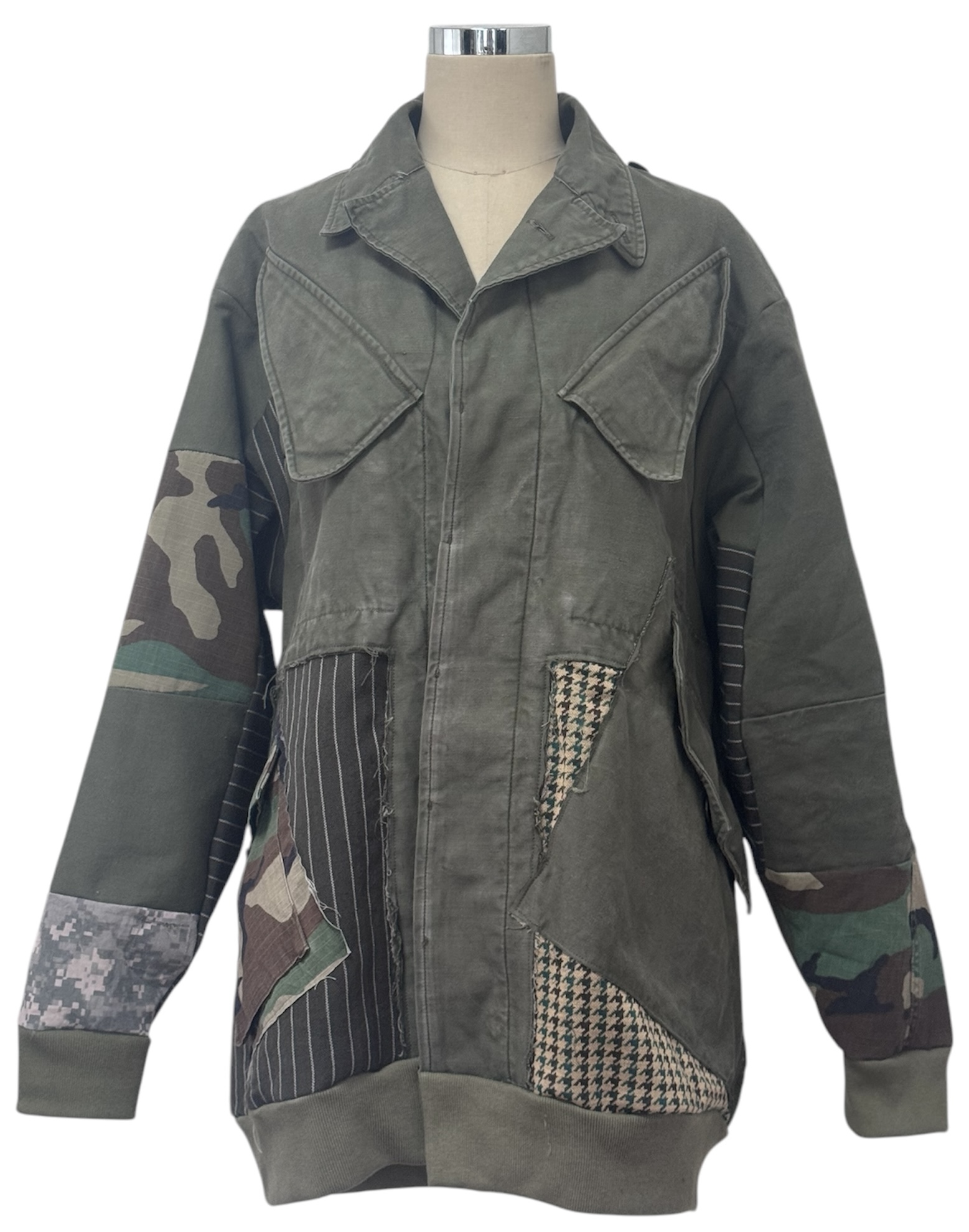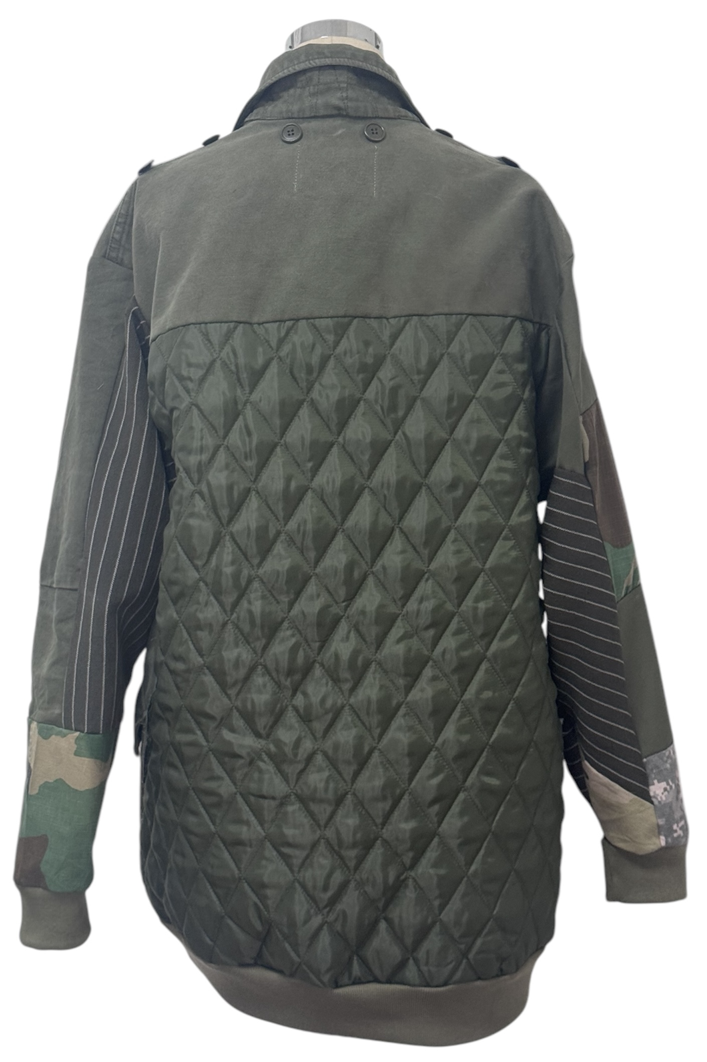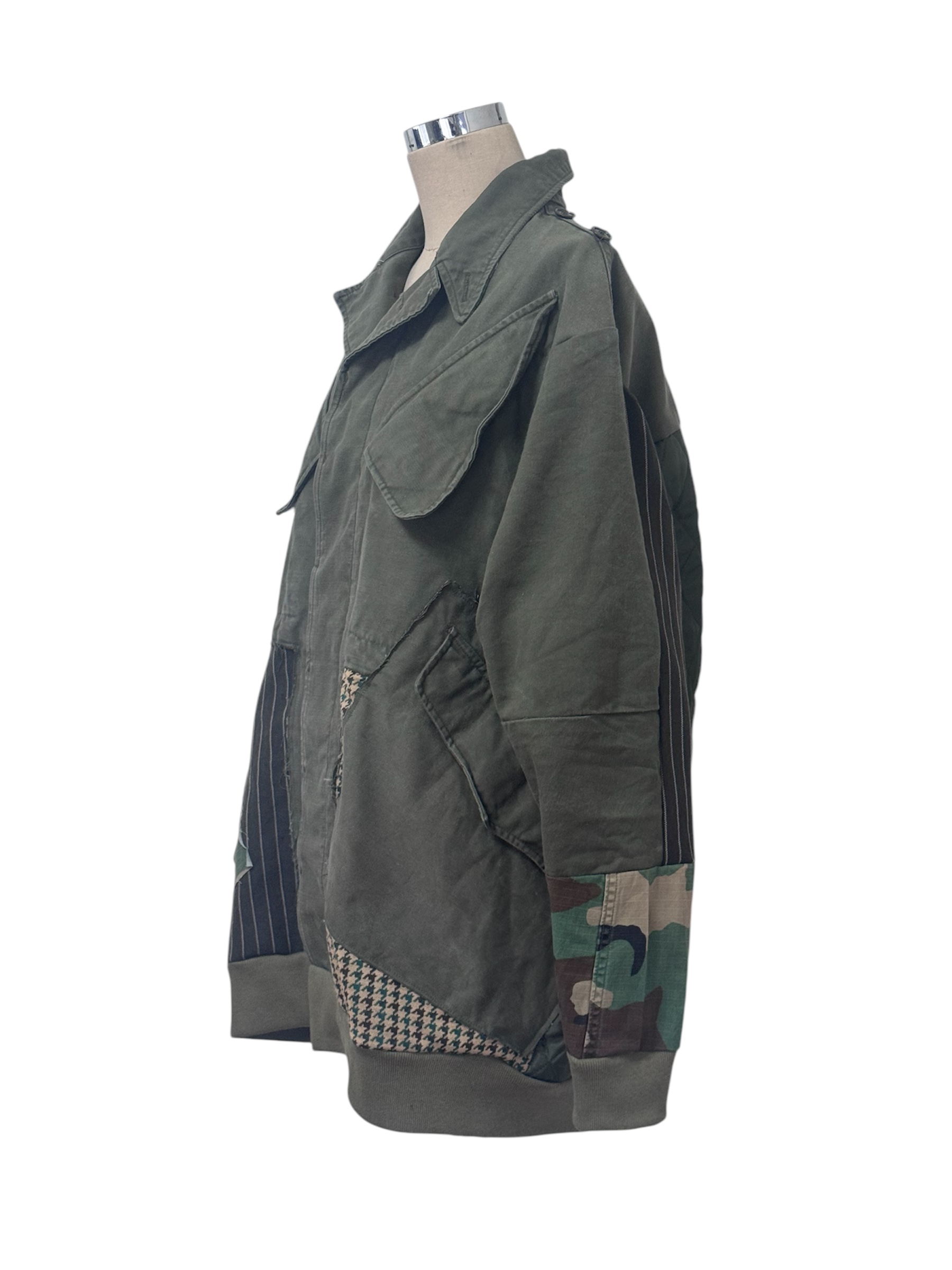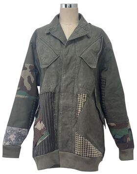 将荷兰军队具有特色的外套与粗花呢面料拼接改造的外套。