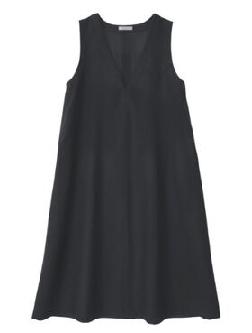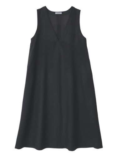 cotton wool-satin wave V neck dress