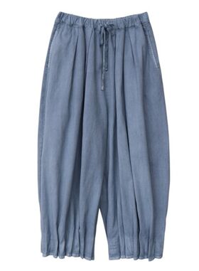 cotton-SASHIKO pleats pants