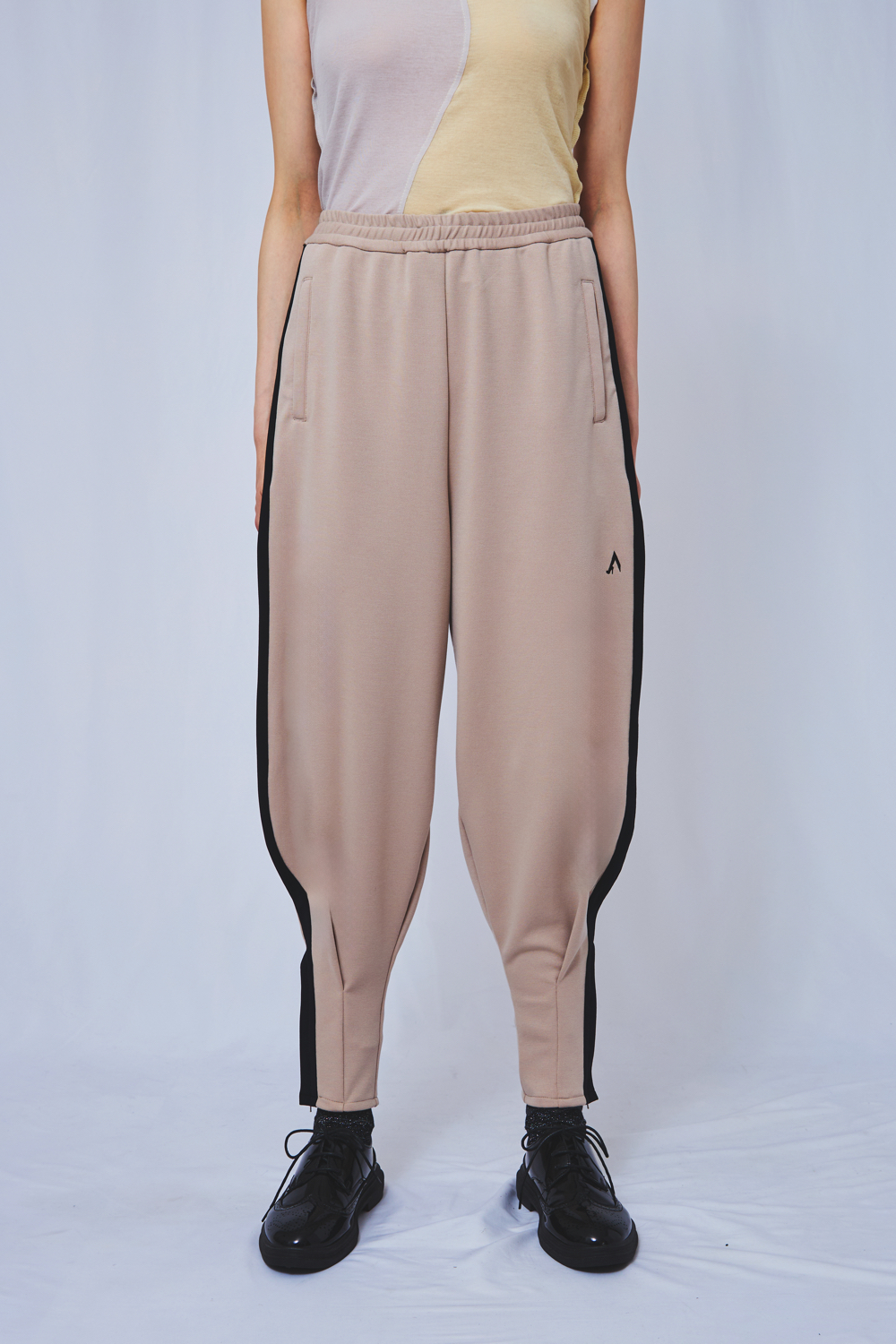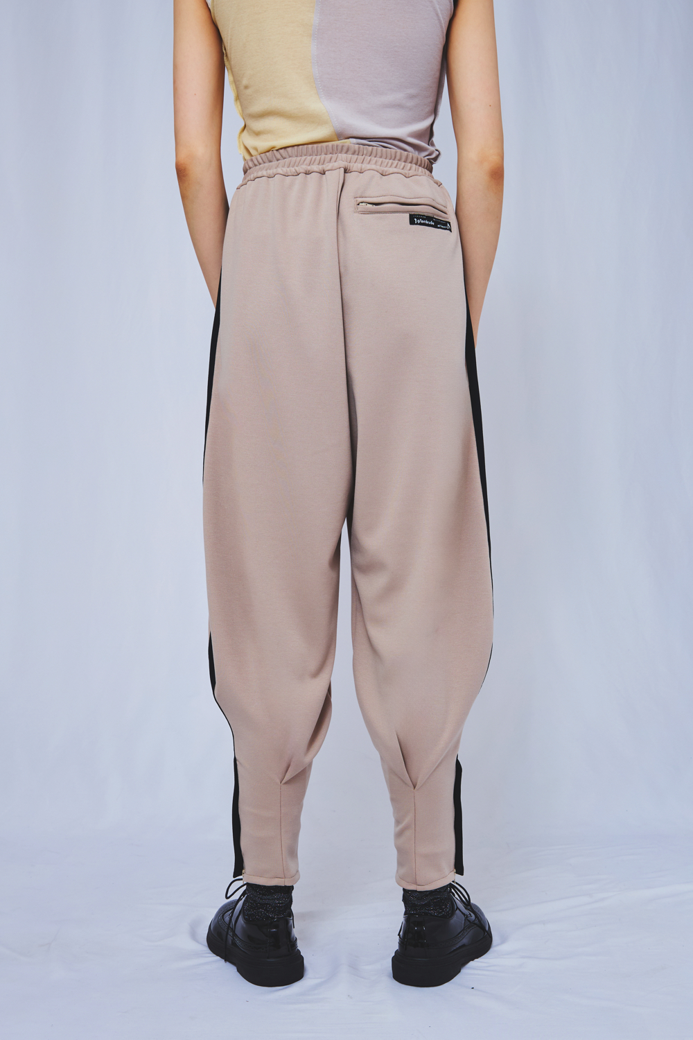 ユニフォームのアイコンであるボンタンパンツを、ドレスパンツからインスパイアされたカッティングでアップデートしました。 裾はファスナーで開閉可能で、ファスナーを開けた履き方もおすすめです。スエット素材のため、履きやすいのが特徴です。 ウエスト内側には紐があり、ウエスト寸法を調節可能です。スニーカーだけでなく、革ブーツとも相性抜群です。 素材:Polyester 73% Rayon 22% PU 5%