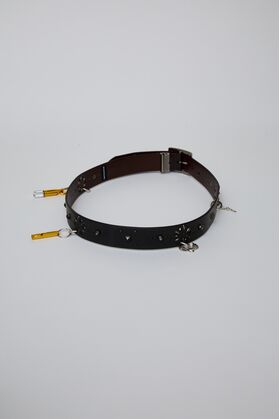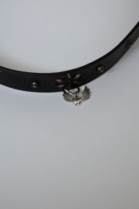 HAND-SPRAYED/STUDDED LEATHER BELT